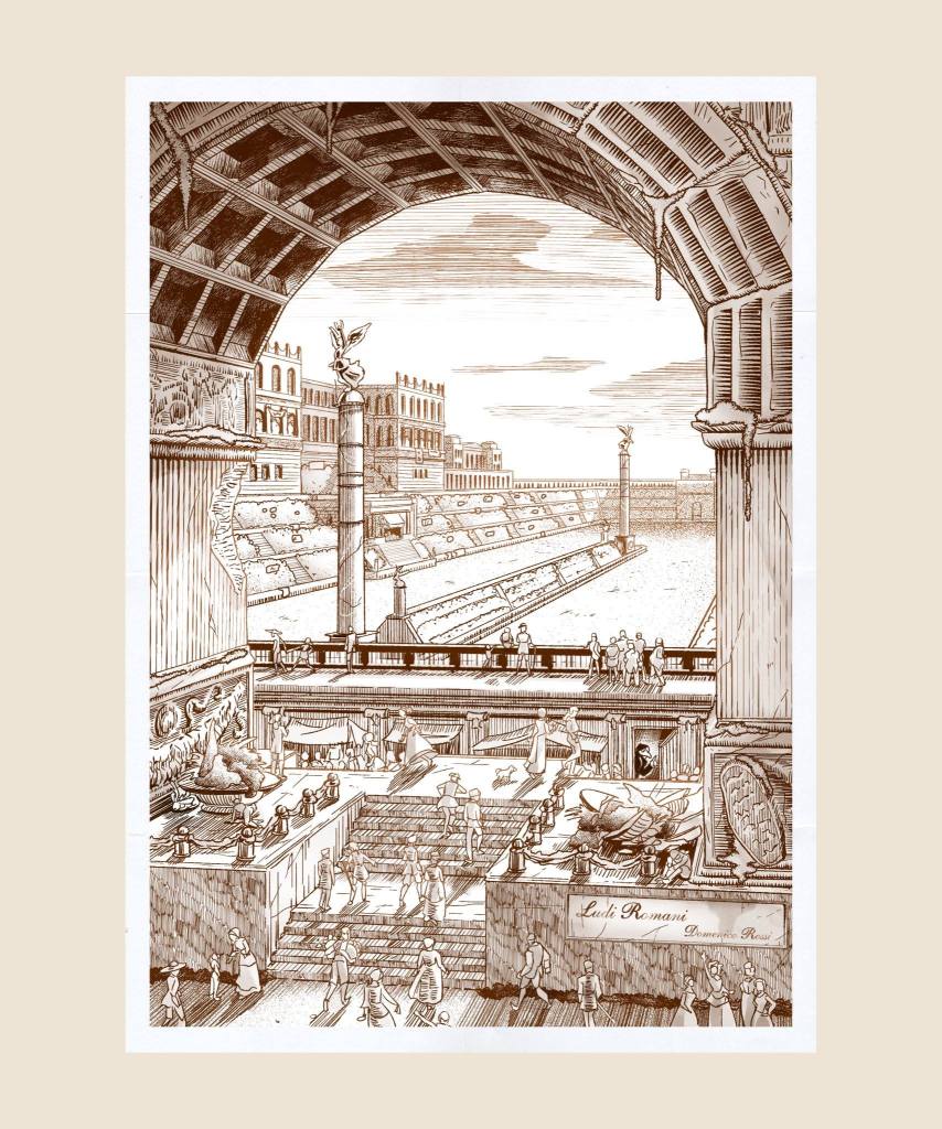 Nuestra nueva novela, El canto de las ruinas, que se publica con Nocturna Ediciones el próximo 18 de octubre (¡¡ya!!), incluye ilustraciones como estas de Alejandra HG, a quien Geo Costa y Fer Alcalá, vamos: Costa Alcalá, le pedimos representar una Roma que recordara a los grabados de Piranesi y, bueno, el resultado ha quedado espectacular: