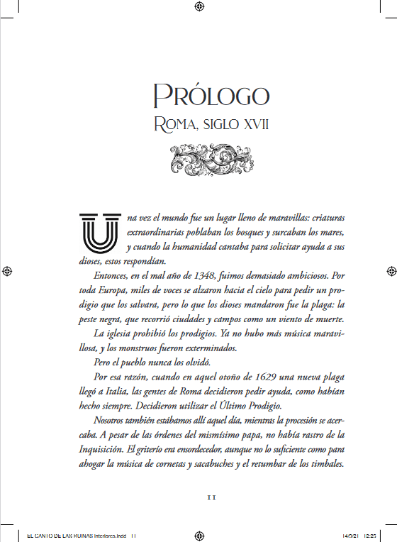 Aquí tienes un ejemplo de la maquetación que ha hecho Nocturna Ediciones de nuestra última novela, El canto de las ruinas, que salió a la venta el pasado 18 de octubre.
